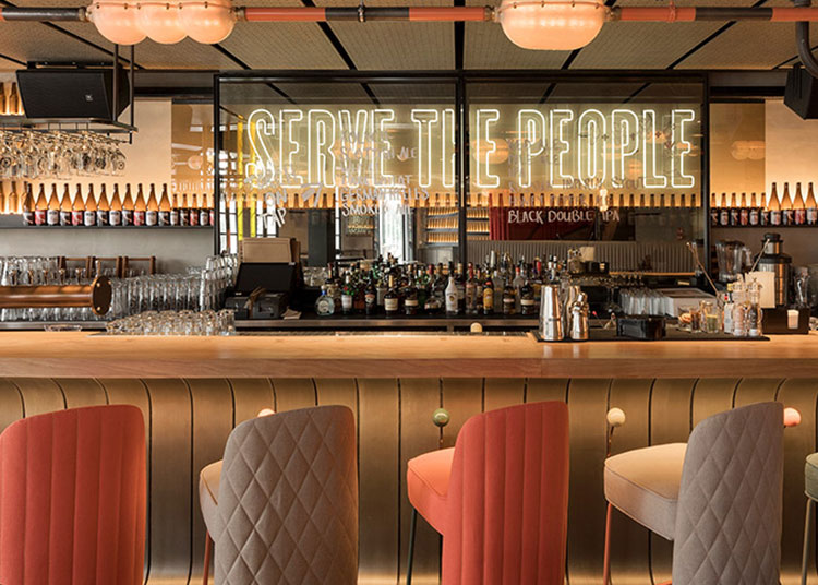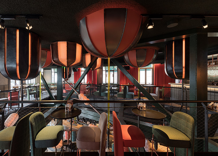 The beer tanks in the general concept of the project were re-designed specifically for this project. Along with the tanks, also metals and pipes that bolster the industrial concept are used in various areas in order to create a holistic effect. The tanks are mounted on the ceiling in a way that gives the impression that tanks are extending beyond the ceiling, and the concept is supported by connecting special pipes equipped with lighting fixtures to these tanks on the ceiling. Also pipes are equipped with an automation system that can change the lights according to different scenarios, for different events and weather conditions. |